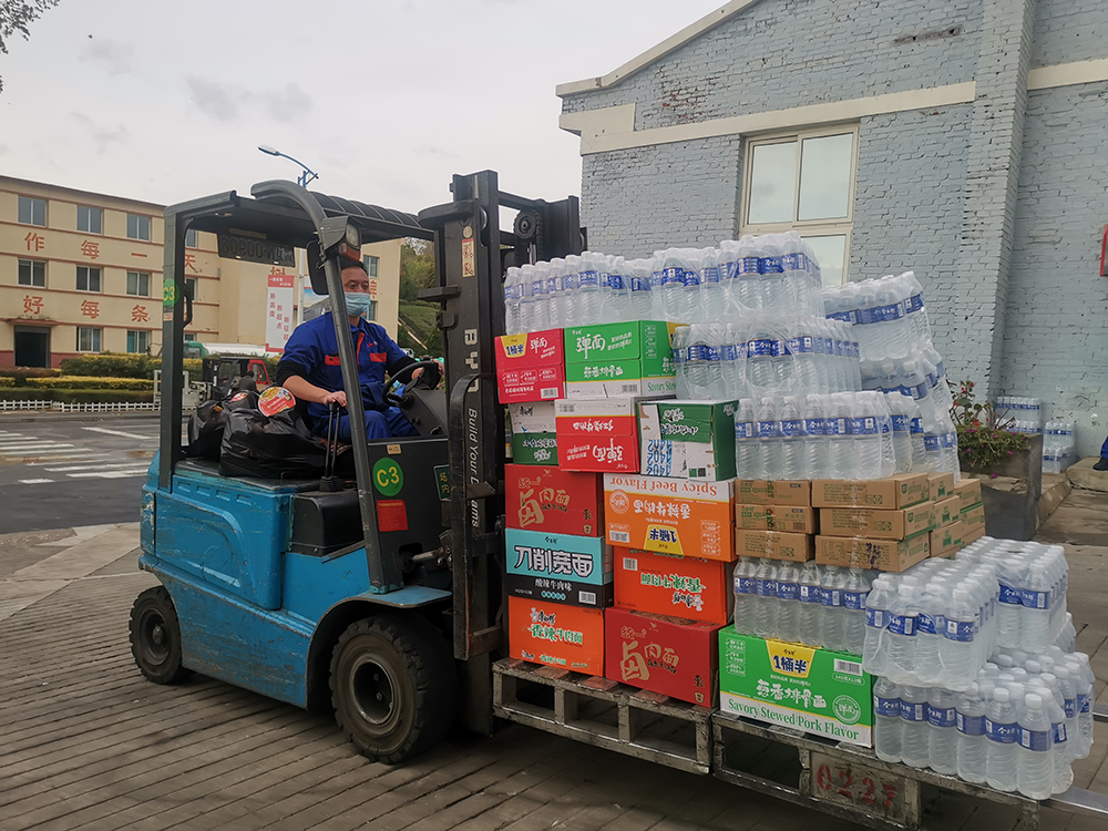 疫情就是命令,公司迅速組織響應,第一時間滿足大家需求。跑遍了浪馬社區(qū)所有大小超市,采購回方便面、礦泉水和香腸等食品,特為在廠員工和外來關(guān)聯(lián)人員每人分發(fā)“愛心食品包”和“洗漱包”,安排員工活動中心的所有休息室和太空艙全面開放,實時補足所有自動售貨機的食品供應。提供慢性病等急需藥品,保證在崗員工安心工作。