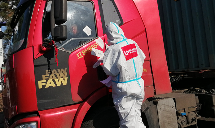 當(dāng)日,公司立即組織相關(guān)人員,認(rèn)真落實(shí)區(qū)委常委指示要求并抽調(diào)14人,成立浪馬公司防疫專班。統(tǒng)一到龍城高速口負(fù)責(zé)將報(bào)備車輛接下,并按照防疫相關(guān)要求對車輛現(xiàn)場進(jìn)行全車消殺、貼封條等工作,車輛進(jìn)廠前再進(jìn)行一次全車消殺并登記后方可進(jìn)廠進(jìn)行裝卸貨作業(yè),期間司機(jī)嚴(yán)格執(zhí)行全程不下車、與外界無接觸要求,作業(yè)完畢后再由防疫專班人員全程護(hù)送至高速路口,嚴(yán)格落實(shí)閉環(huán)管理,以最快速度打通了公司運(yùn)輸生命通道。